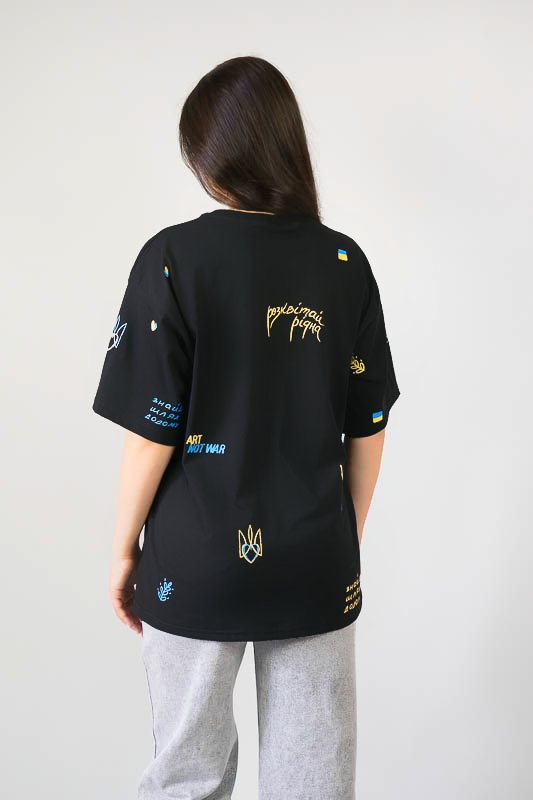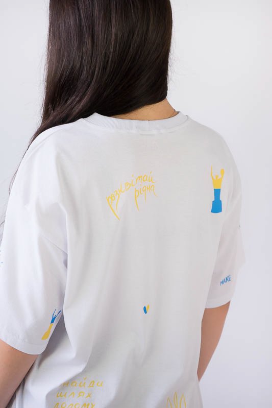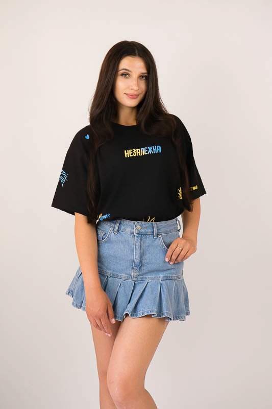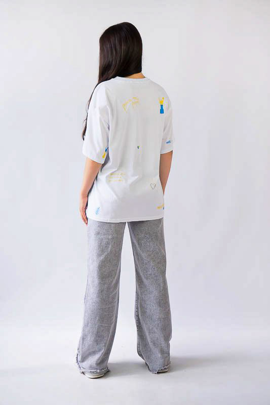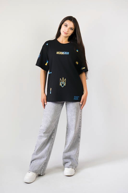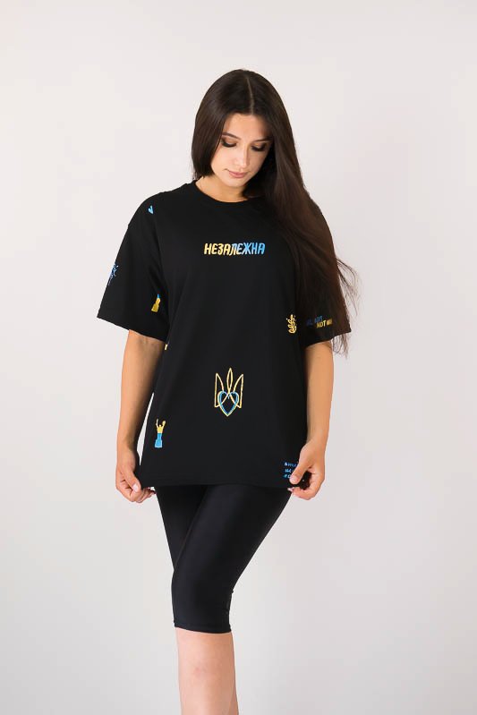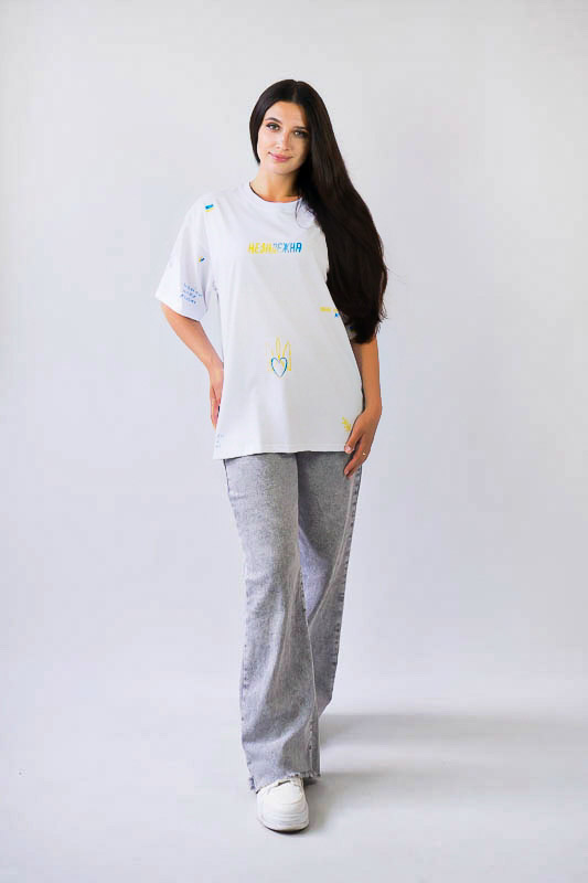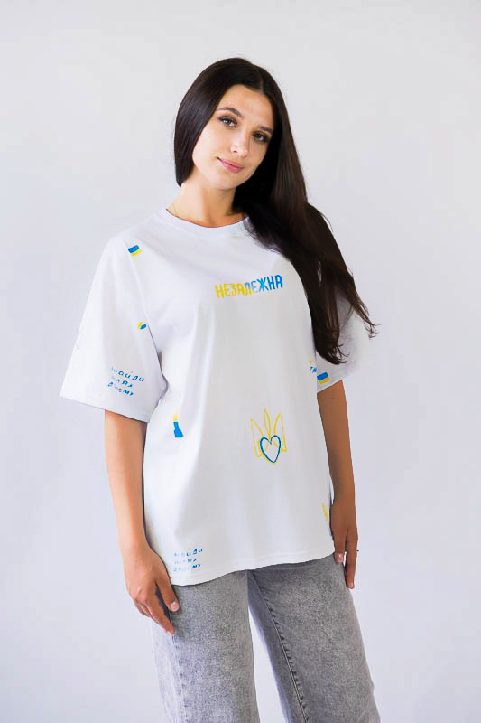 Стильна футболка oversize з патриотичним принтом виготовлена із легкого кулірного полотна. Модель з короткими рукавами та округлим вирізом. Футболка відмінно комбінується з джинсами, шортами, легінсами. Кулір – це бавовняне трикотажне полотно. Його гладка поверхня робить виріб приємним до тіла. Гігроскопічність і повітропроникність матеріалу забезпечує нормальну терморегуляцію тіла і не створює дискомфорту в жарку пору року. Футболку рекомендується прати при температурі до 40°C у делікатному або ручному режимі, не використовувати відбілювачі або порошки з відбілювачами.