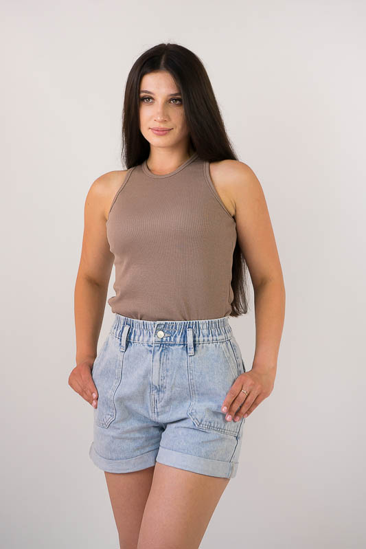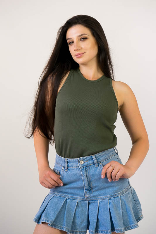 Майка жіноча виготовлена з трикотажного матеріалу в рубчик, що імітує в'язану резинку. Такий трикотаж відрізняється комфортною м'якістю та гарною еластичністю. Він добре тягнеться і тому ідеально сяде по фігурі. Доглядати виріб нескладно: прати при температурі до 40°С у делікатному або ручному режимі; не можна скручувати при віджиманні, а також сушити на вішалці, рекомендується обережно вичавити, не перекручуючи, а потім розкласти на горизонтальній поверхні і залишити до повного висихання; прасувати обережно з паром.
