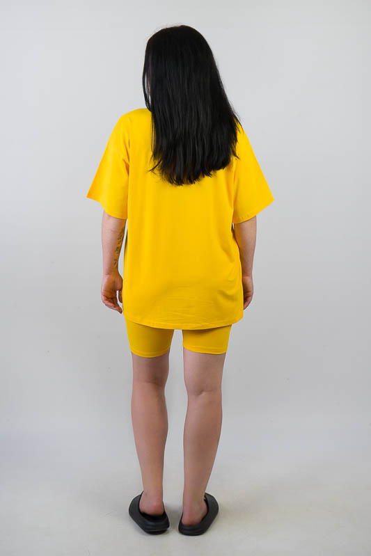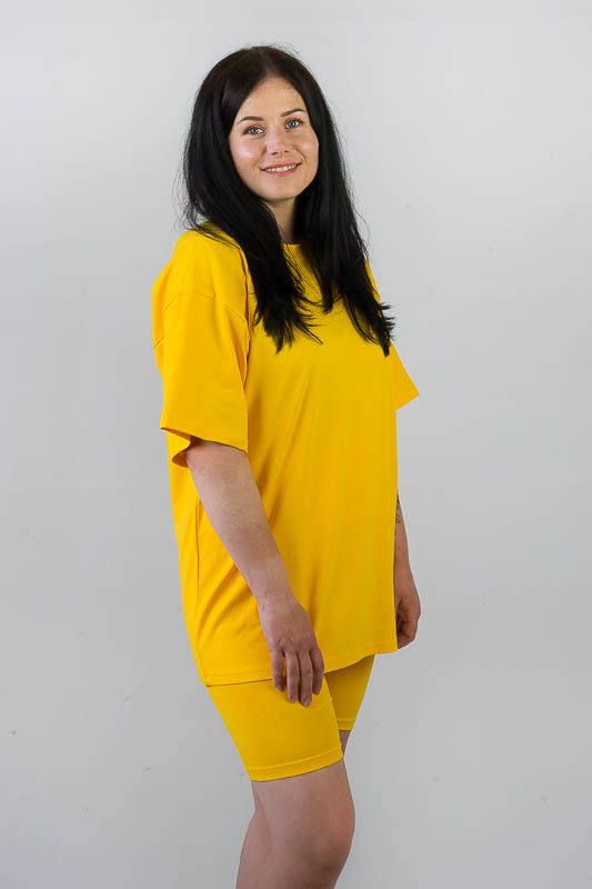Жіночий комплект в спортивному стилі від ТМ «Гном» подарує вам відчуття комфорту та зручності. Складається він з подовженої футболки «oversize» та еластичних трес. Виготовлений комплект у різній кольоровій гамі, на будь-який смак. Крім зручного крою перевагою моделі є матеріал. Це м'яке та легке трикотажне полотно – фулікра, яке щє називають стрейчевим куліром. Його склад – це 95% бавовни та 5% лайкри. Полотно еластичне та приємне до тіла. Матеріал має гарну гігроскопічність, не викликає алергію. Виріб невибагливий у догляді, його можна прати при температурі до 40°C у делікатному або ручному режимі, не використовувати відбілювачі або порошки з відбілювачами.