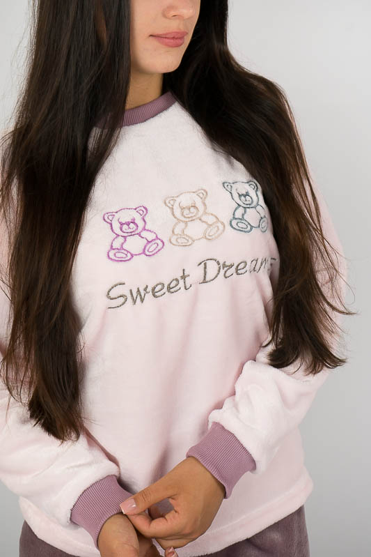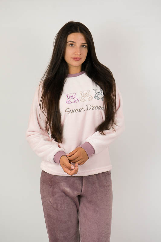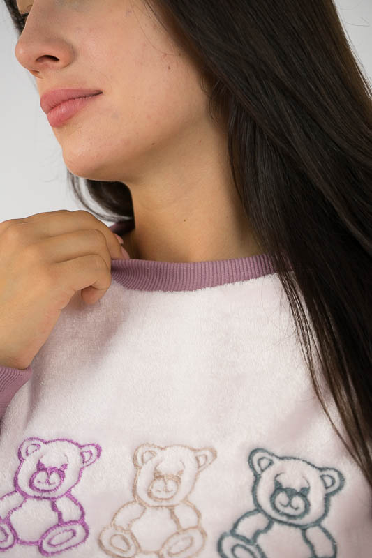 Тепла жіноча піжама із колекції "Family look" сприяє повноцінному відпочинку та приємному сну. Вільний крій та обробка зрізів рукавів і ніжок еластичними манжетами забезпечать комфорт та зручність. Передня частина кофти прикрашена вишивкою. Сімейну колекцію доповнять моделі арт. 53022Д, 53022П та 150-53022М. Піжама виконана з полотна велсофт (махра). Матеріал складається з 75% бавовни 25% поліестеру, м'який і міцний з довгим ворсом, не линяє, не розтягується, не дивлячись на ворсистість, не схильний до утворення ковтунів. Дуже затишний і теплий, не подразнює шкіру, гіпоалергенний і повітропроникний, особливо практичний в зимовий період. Рекомендується прати при температурі 40°C, прасувати не обов'язково.