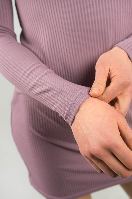 Жіноча обтисла сукня виготовлена для дівчат, які цінують комфорт і затишок. Завдяки еластичності матеріалу модель вдало підкреслює фігуру, а вкорочений поділ дає можливість продемонструвати стрункі ніжки. Відсутність застібок, простий крій роблять сукню придатною для щоденного використання, а фактурна поверхня матеріалу додає моделі вишуканості. Сукня виготовлена з трикотажу мустанг, (74% поліестер, 22% віскоза, 4% еластан), який є стрейчевим полотном у вигляді "гумки", тобто чергування лицьових і виворітних рядів. Тканина приємна до тіла, не надто тонка. Підходить для пошиття топів, суконь, стильних трикотажних костюмів, кардиганів та ін. Прати вручну в воді не більше 30 °C, сильно не віджимати, прасувати не обов’язково.