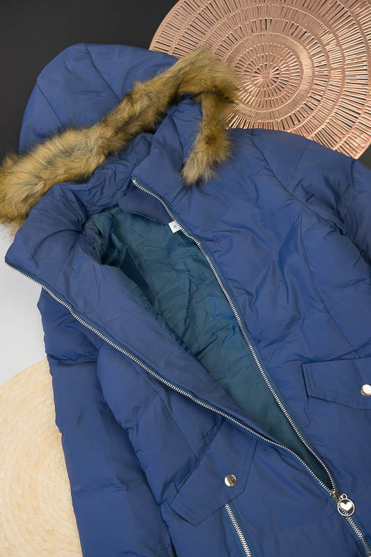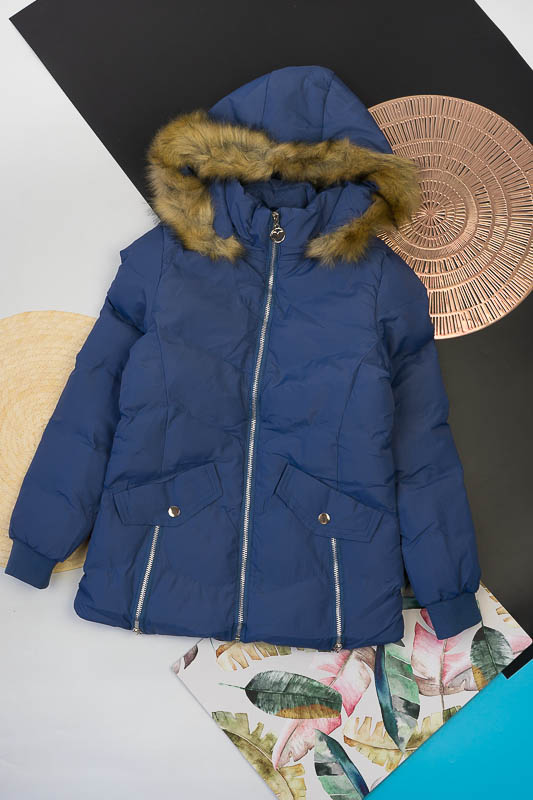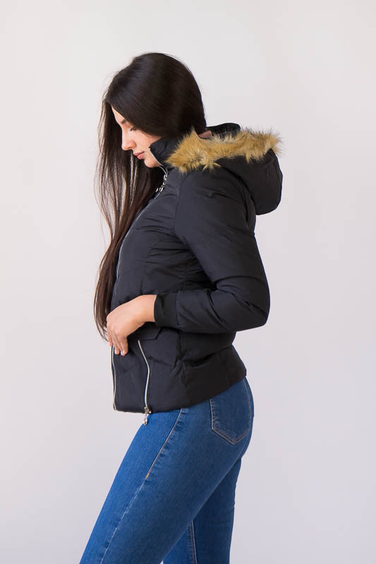 Жіноча куртка на змійці, капюшон зі штучним хутром відстібається, плащівка на синтепоні.